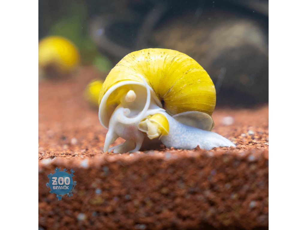 Velký, nápadný sladkovodní plž pocházející z Jižní Ameriky. Dorůstá 5–8 cm, má kulovitou lasturu s hlubokými žlábky mezi závity a zbarvením od žluté po hnědou. Je velmi žravý – požírá řasy, zbytky potravy i živé rostliny, proto není ideální do rostlinných akvárií. Snáší široký rozsah podmínek (18–28 °C) a klade růžová až oranžová vajíčka nad hladinu.