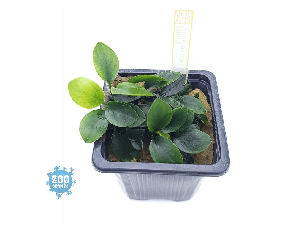Anubias barteri 'Gimli' je kompaktní akvarijní rostlina s malými, tmavě zelenými listy, které dorůstají výšky 5–10 cm. Je ideální pro popředí akvária nebo připevnění na kořeny a kameny. Preferuje slabé až střední osvětlení, teplotu vody 22–28 °C a pH 6,0–7,5. Nevyžaduje CO₂ a je odolná, což ji činí vhodnou pro začátečníky. Roste pomalu a vytváří husté trsy, které dodávají akváriu přírodní vzhled.
