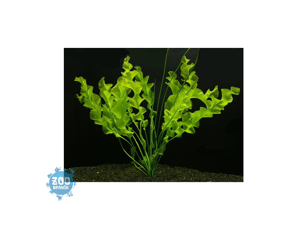 Aponogeton ulvaceus je atraktivní akvarijní rostlina rostoucí z hlízy, s dlouhými, zvlněnými a průsvitnými listy světle až středně zelené barvy. Dorůstá výšky 30–60 cm, což ji činí ideální pro střední až zadní část akvária. Preferuje střední až silné osvětlení, teplotu vody 22–28 °C a pH 6,0–7,5. Pro zdravý růst vyžaduje živinami bohatý substrát a občasnou klidovou fázi. Roste rychle a přidává akváriu elegantní a exotický vzhled.