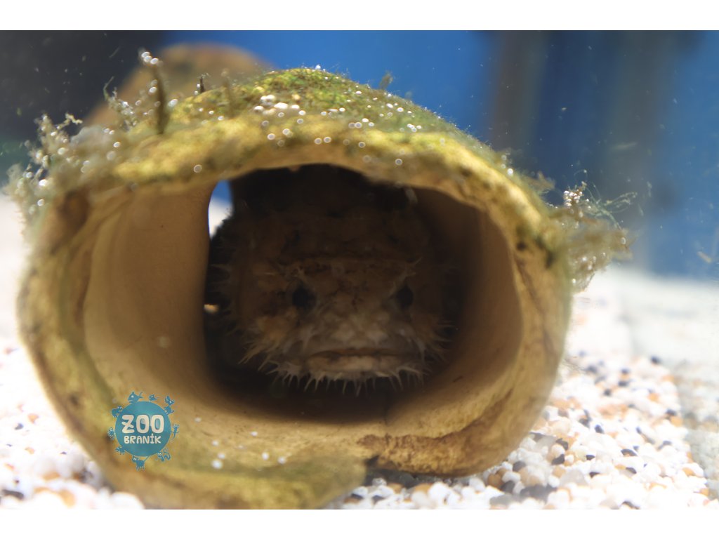 | Zbarvení:: | Hnědavě až šedě mramorovaná, dokonale splývá s prostředím dna. |