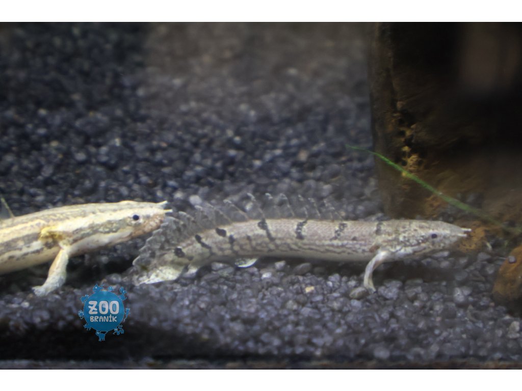 Jeden z nejčastěji chovaných bichirů díky atraktivnímu pruhovanému vzoru.