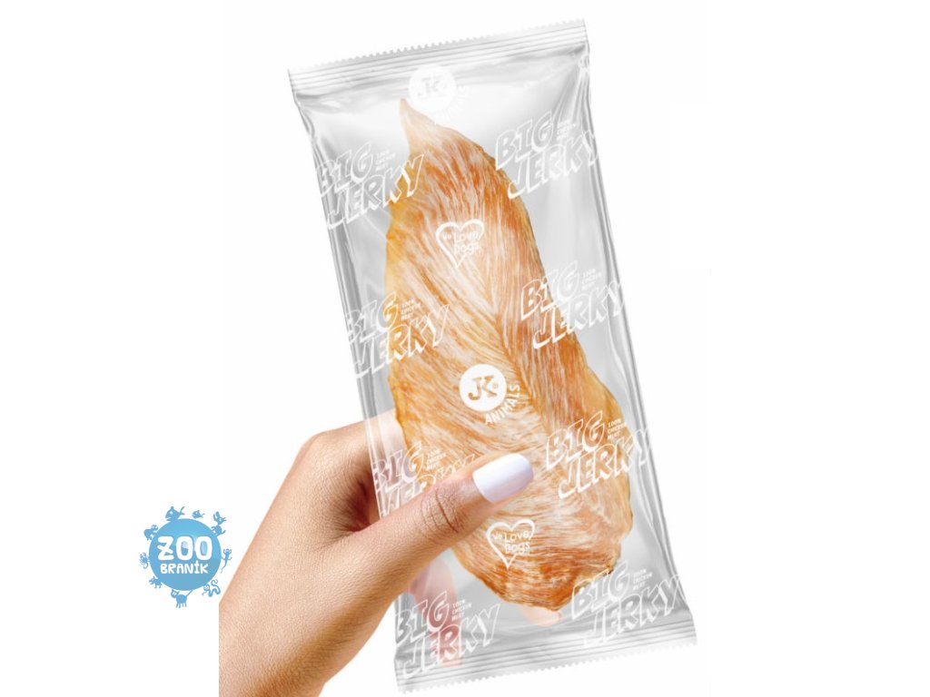 BIG JERKY. Doplňkové krmivo pro psy. Vynikající pochoutka pro psy každého věku, slouží jako pamlsek nebo odměna při výcviku. Pamlsky ze sušených mas se řadí mezi jedny z nejkvalitnějších, maso patří mezi přirozenou potravu psa. Jsou vyráběny z kvalitní svaloviny a můžeme je použít třeba na doplnění energie na dlouhém výletě. Tuhle výbornou masovou pochoutku si ihned zamiluje každý pes!