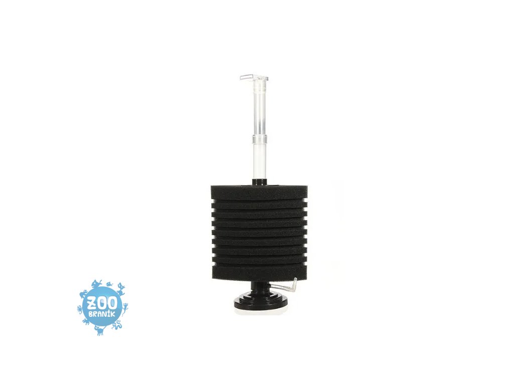 Výborné umístění do rohu akvária díky houbě ve tvaru čtvrtiny válce.
