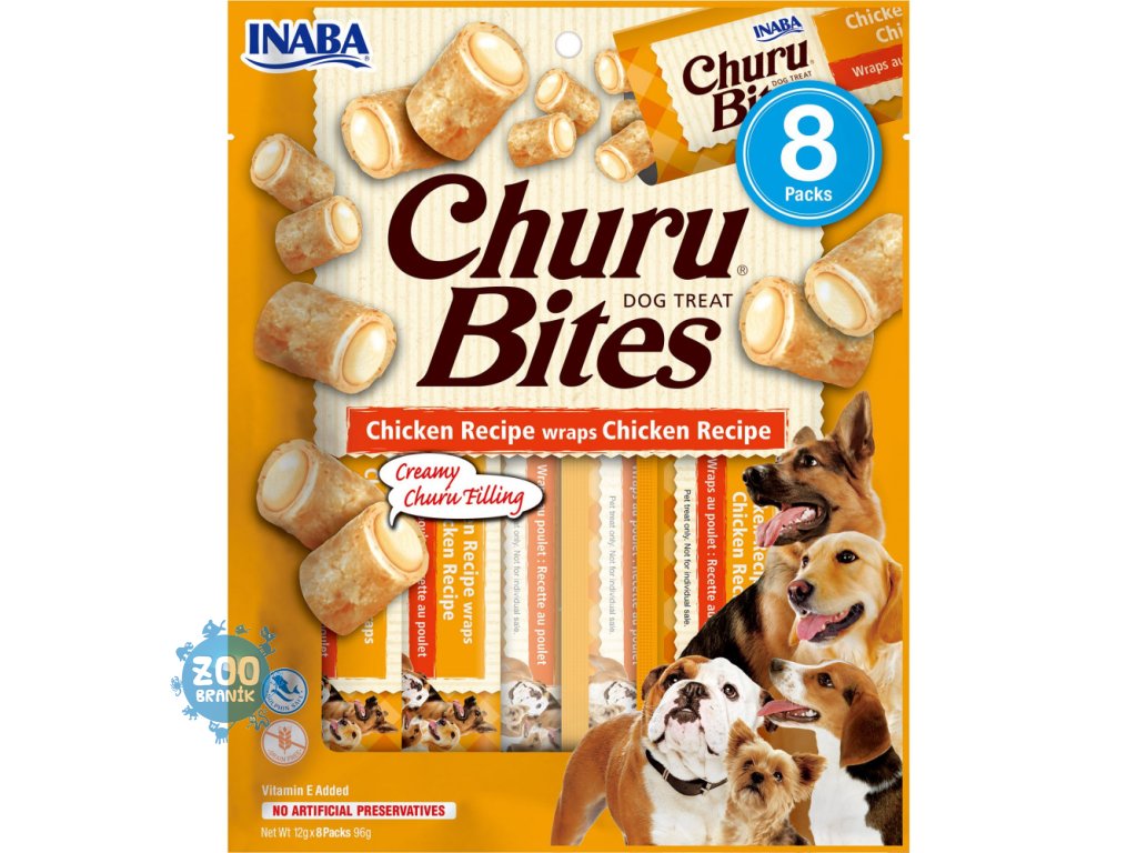 Měkké pamlsky tvaru polštářků plněné Churu masovým pyré pro psy s kuřecím z farmářského chovu. Šťavnaté, měkké a extra lahodné masové pamlsky bez obilovin. Zdravé mlsání s nízkým obsahem kalorií, bez konzervantů a bez umělých dochucovadel. Psí grain free pamlsky Churu Bites jsou navíc obohaceny extraktem ze zeleného čaje a vitaminem E. Psí pamlsky mají vysoký obsah vody a díky tomu jsou vhodným doplňkem k suchému krmivu, pro pohotovostní doplnění tekutin a pro psy které málo pijí. Tyto pamlsky jsou ideální pro ukrytí tablety na odčervení či jiného léku, který je potřeba psovi nenásilně podat.