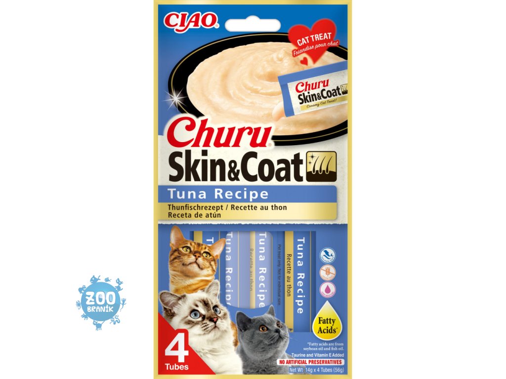 Churu cat masové pyré pro krásnou srst a kůži - tuňák