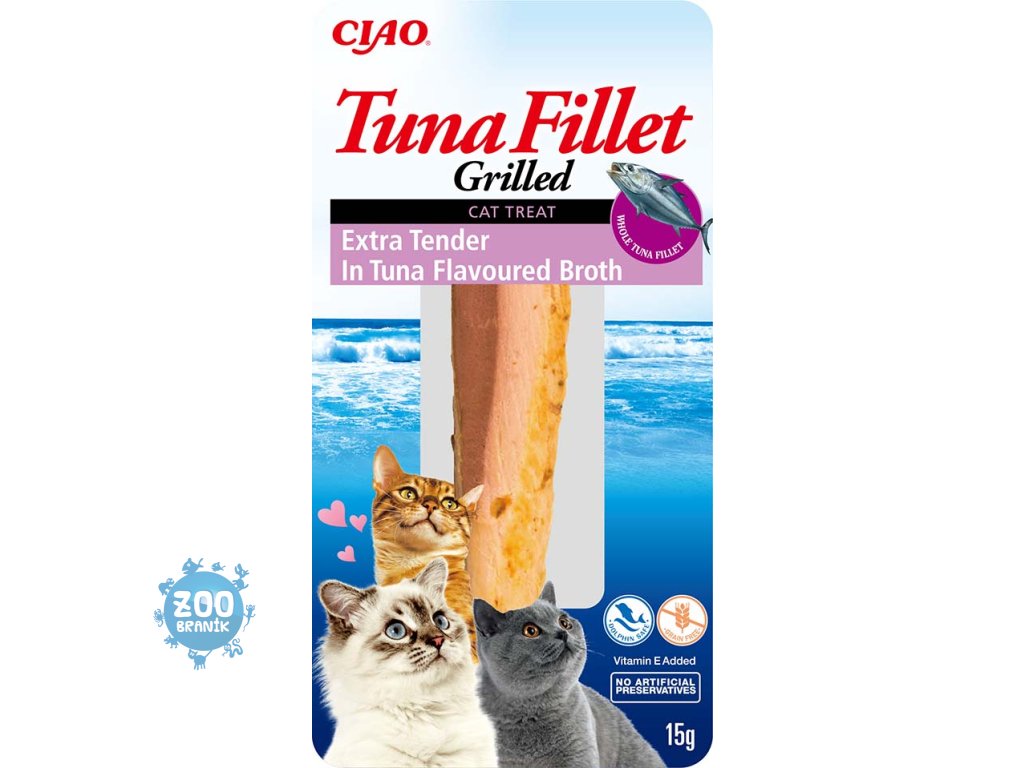 100% extra křehké tuňákové filátko v poctivém tuňákovém vývaru. Šťavnatý grilovaný filet z divokého tuňáka pro pravý gurmánský zážitek. Neodolatelná chuť a vůně poctivého masa. Křehké filátko potěší vaší kočičku jako pamlsek nebo jako doplněk běžné krmné dávky. Lahodný vývar skvěle ochutí jakékoliv granule a pomůže zvýšit chuť k jídlu. Nízký obsah kalorií. Bez obilovin, bez obsahu umělých barviv, bez chemických dochucovadel a bez aromat. Kočičí grain free pochoutka Tuna Fillet je navíc obohacena o 100% přírodní extrakt ze zeleného čaje.