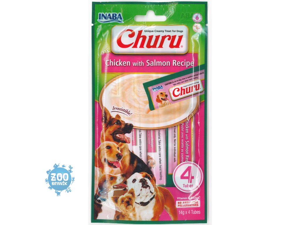 Churu masové pyré pro psy s kuřecím z farmářského chovu a lososem. Lahodný, přírodní pamlsek krémové konzistence bez obilovin. Zdravé mlsání s nízkým obsahem kalorií, bez konzervantů, chemických aromat, bez barviv a umělých dochucovadel. Masové pyré můžete také podávat stejně jako jinou psí kapsičku přímo z misky nebo ho můžete přidat ke granulím pro vylepšení jejich chuti. Psí pamlsky Churu mají vysoký obsah vody a díky tomu jsou vhodným doplňkem k suchému krmivu nebo pro psy, kteří málo pijí. Pamlsky Churu jsou 100% přírodní a zdravé mlsání pro psy všech věkových kategorií. Churu jsou ideální pro ukrytí tablety na odčervení či jiného léku, který je potřeba psovi nenásilně podat.