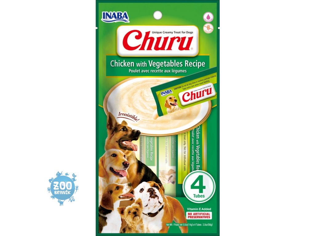 Churu masové pyré pro psy s kuřecím z farmářského chovu a zeleninou. Lahodný, přírodní pamlsek krémové konzistence bez obilovin. Zdravé mlsání s nízkým obsahem kalorií, bez konzervantů, chemických aromat, bez barviv a umělých dochucovadel. Masové pyré můžete také podávat stejně jako jinou psí kapsičku přímo z misky nebo ho můžete přidat ke granulím pro vylepšení jejich chuti. Psí pamlsky Churu mají vysoký obsah vody a díky tomu jsou vhodným doplňkem k suchému krmivu nebo pro psy, kteří málo pijí. Pamlsky Churu jsou 100% přírodní a zdravé mlsání pro psy všech věkových kategorií. Churu jsou ideální pro ukrytí tablety na odčervení či jiného léku, který je potřeba psovi nenásilně podat.