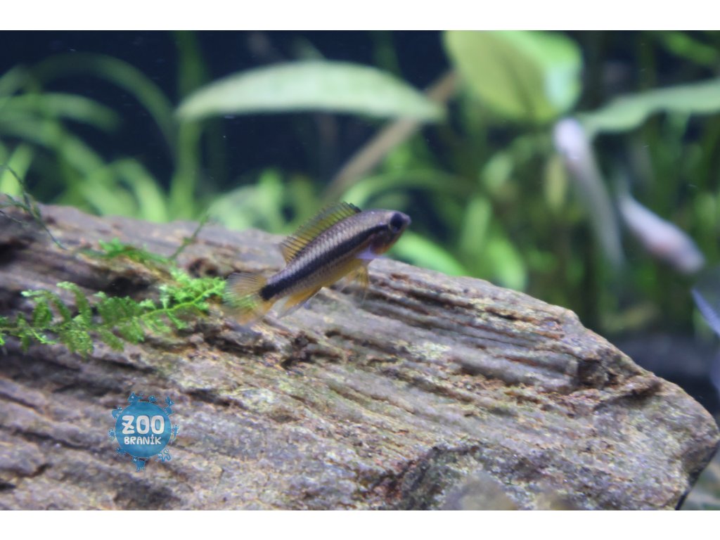 Relativně klidná trpasličí cichlida, vhodná do společenských akvárií s menšími rybami.