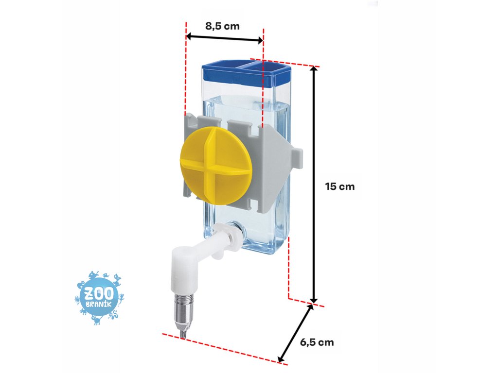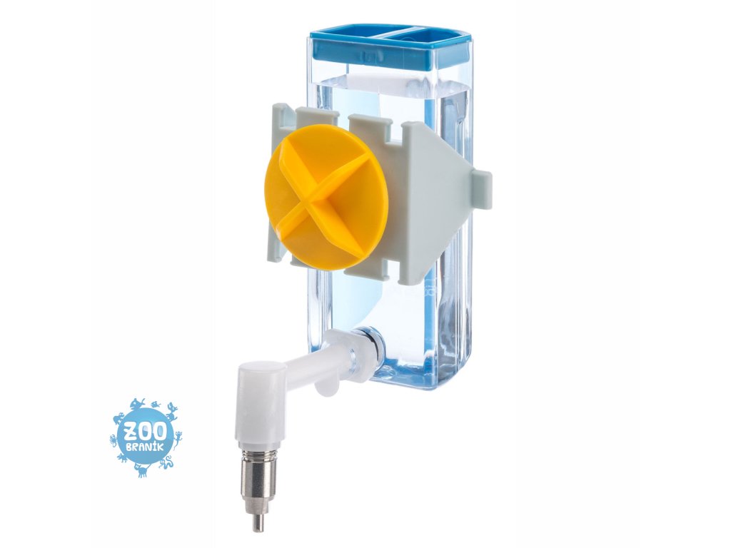 Plastová napáječka pro hlodavce je vyrobena z recyklovatelného a netoxického průhledného plastu. Je vybavena nerezovým ventilem, který zajišťuje vynikající těsnění vody. Napáječka je vybavena plastovým šroubem a přísavkami pro snadné upevnění na drátěné i hladké povrchy. Lahev je univerzální a může být uchycena jak na klec, tak mimo ni. Horní víko umožňuje snadné plnění bez nutnosti demontáže z klece. Napáječka má měřící stupnice, díky kterým snadno přidáte léky nebo vitamíny v přesném poměru. Ventil i hubice jsou snadno demontovatelné pro snadné čištění.