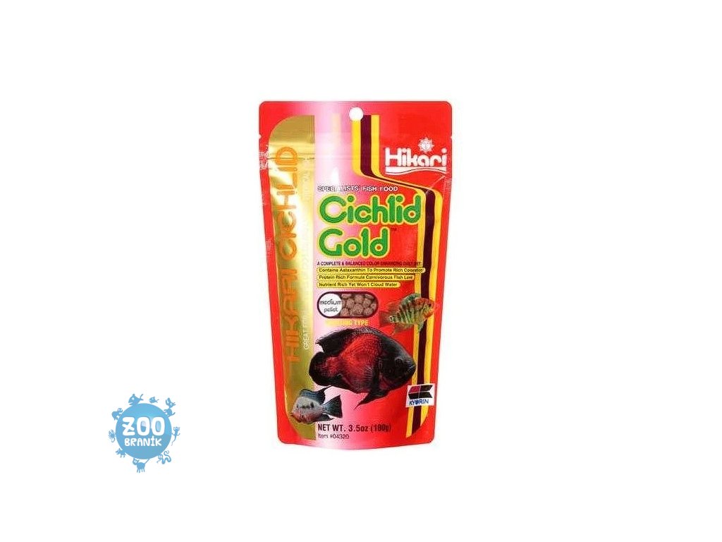 Krmivo Hikari Cichlid Gold obsahuje speciální přísady podporující vybarvení ryb, sestavené tak, aby Vaše Cichlidy a jiné velké tropické ryby měly přirozenou krásu a náležitý tvar. Ingredience nejlepší jakosti jsou smíchány v přesných poměrech, aby vzniklo krmivo, které oživí brilantní barvy Vašich ryb.