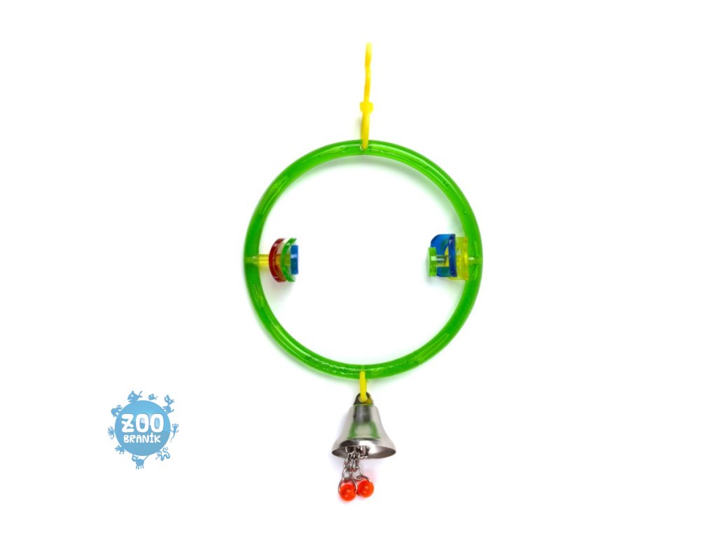 Kvalitní plastová hračka houpačka kruh se zvonkem pro ptáky na zavěšení.