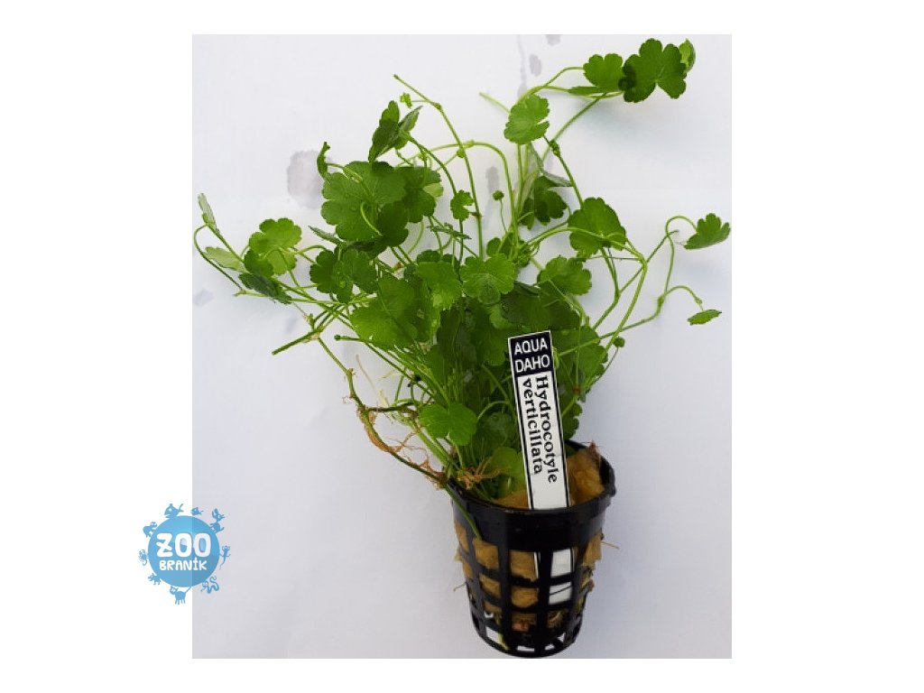 Hydrocotyle verticillata je nízká, plazivá akvarijní rostlina s kulatými, deštníkovitými listy na tenkých stoncích. Dorůstá výšky 3–15 cm a je ideální do popředí akvária. Preferuje teplotu 20–28 °C, pH 6,0–7,5 a střední až silné osvětlení. Roste pomalu, ale při dobrých podmínkách vytváří hustý koberec. Snadno se množí oddenky a je vhodná i pro paludária.