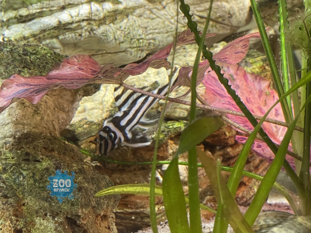 • Chování: Hypancistrus zebra je klidný a teritoriální, obvykle se skrývá ve štěrbinách, pod kameny nebo kořeny.