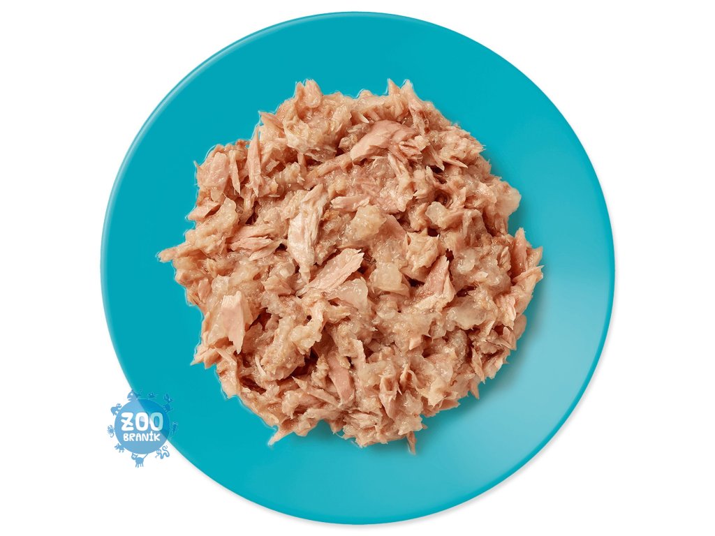 Konzerva obsahuje celé kousky tuňákových filetů v rybím vývaru, krmivo je lehce stravitelné, nutričně vysoce hodnotné, přirozeně hypoalergenní a hlavně velmi chutné, vhodné i pro vybíravé a mlsné kočky.