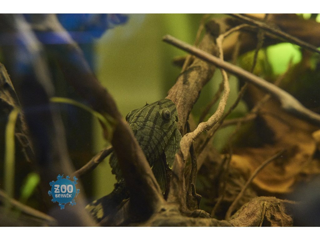 - Strava: Převážně býložravý – konzumuje dřevo (xylivor), rostlinnou potravu a řasy. Lze doplňovat zeleninou (cuketa, špenát) a speciálními tabletami pro býložravé sumce.