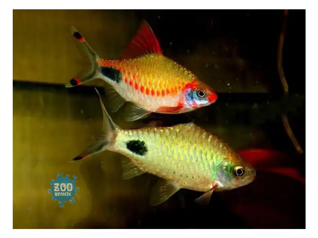 | Zbarvení:: | Samci mají výrazně červené ploutve a jsou barevnější |