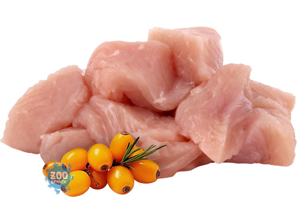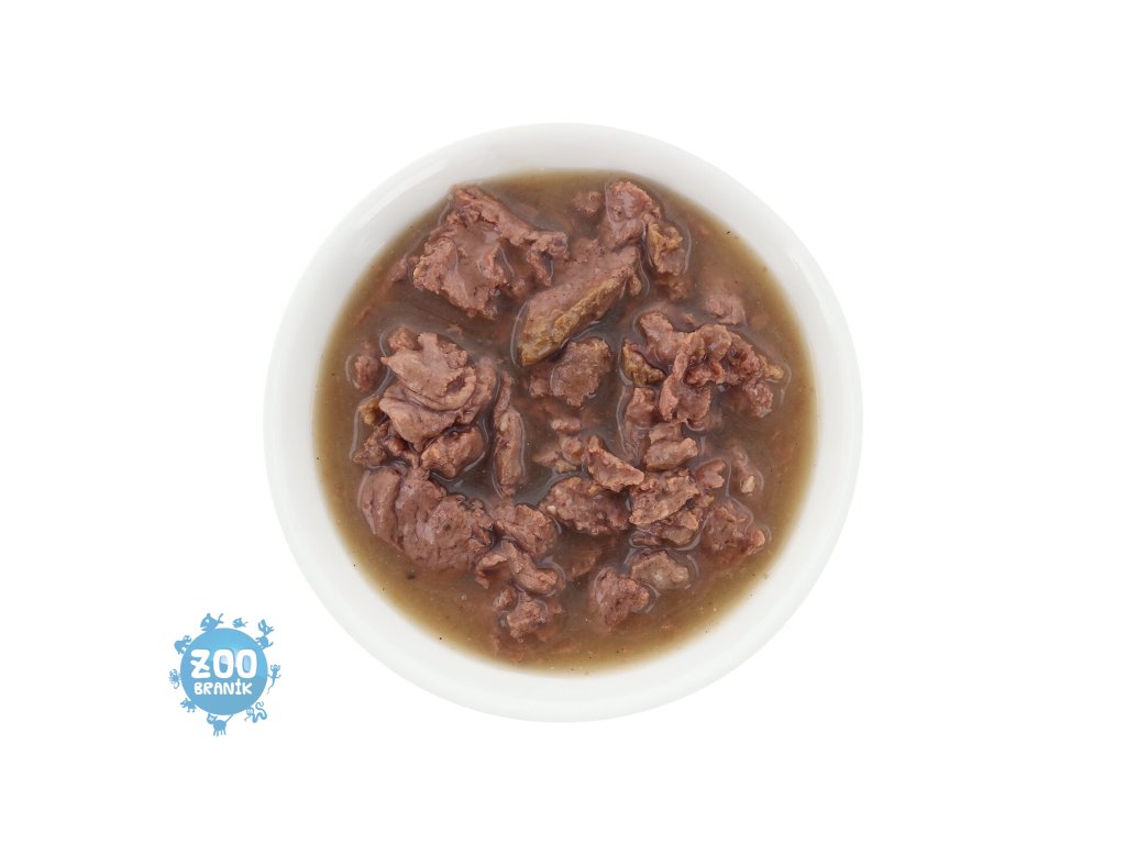 | Typ krmiva:: | Šťavnaté krůtí kousky v lahodné omáčce s lněným olejem a rakytníkem. |