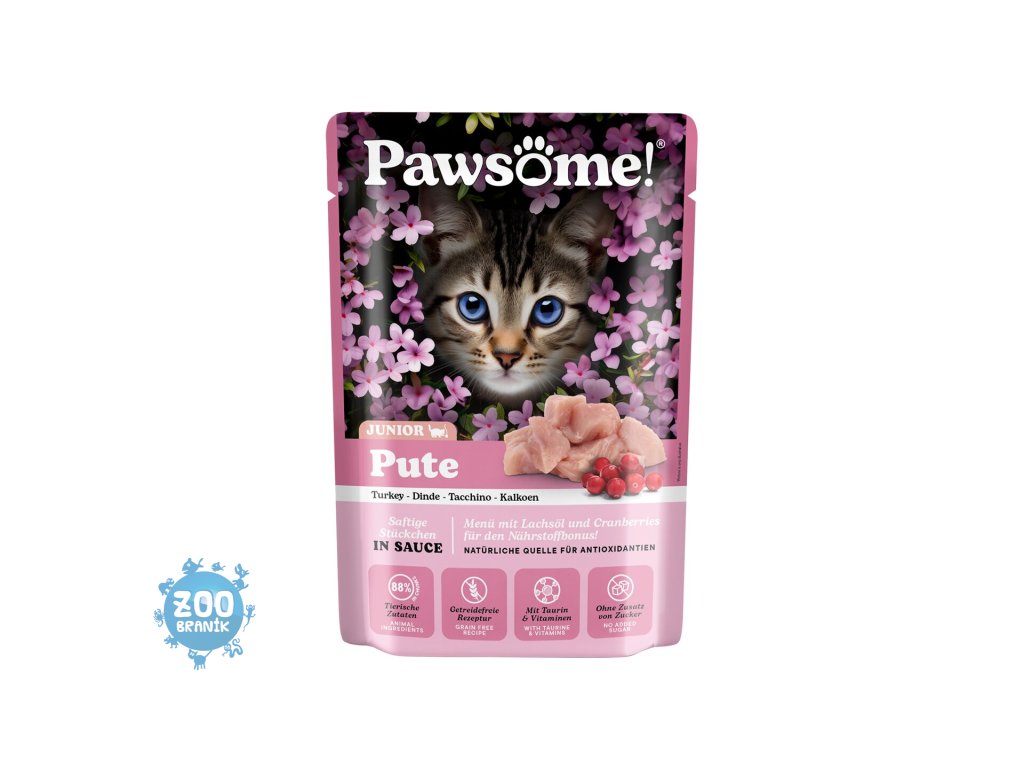 Šťavnaté měkké kousky s krůtím masem, lososovým olejem a brusinkami v lahodné omáčce představují kompletní krmivo s vyváženým podílem bílkovin, tuků, vitamínů a minerálů, které přispívá ke zdravému vývoji a růstu mladých koček do 12 měsíců věku.