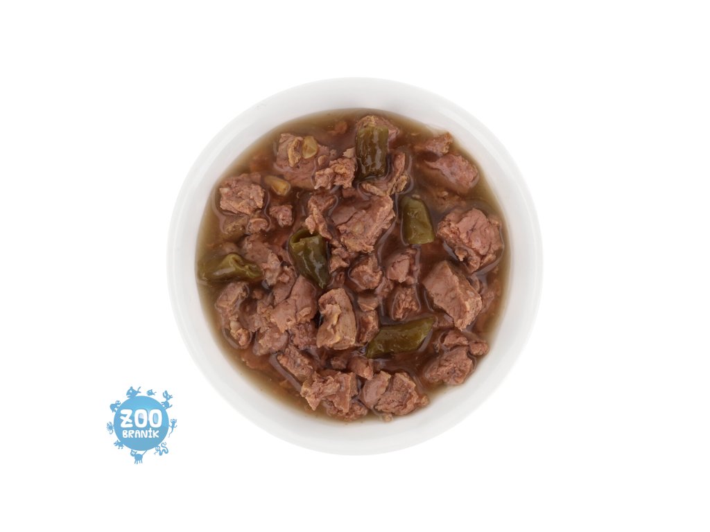 | Typ krmiva:: | Kompletní krmivo s kousky krůtího masa a zelenými fazolkami. |