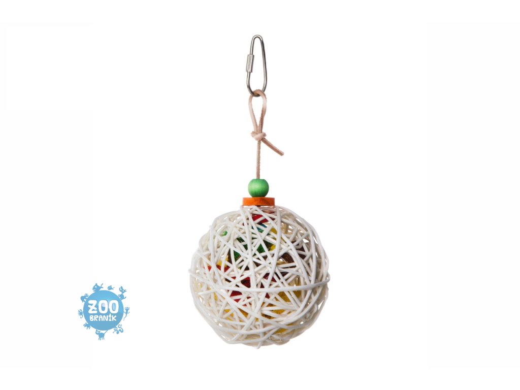 Ratanová hračka s lufa houbami a dřevem určená k zavěšení do klece pomocí kovové karabiny. Hračka je určena zejména pro střední papoušky. Někteří papoušci se mohou nové hračky bát. V takovém případě doporučujeme seznamovat papouška s novou hračkou pomalu a zpočátku ji nechat zavěšenou například zvenku na kleci, aby si na ni mohl papoušek pomalu zvyknout.