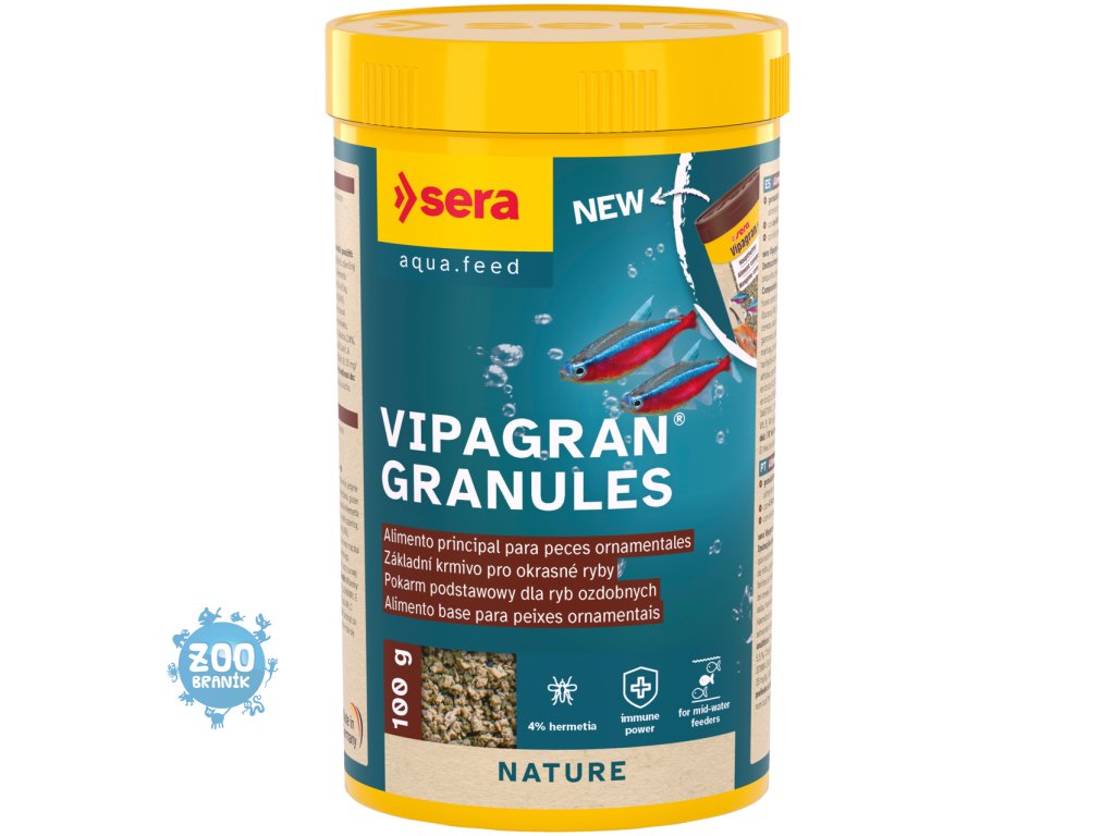 Vipagran Granules je základní krmivo složené z měkkých granulí bez barviv a konzervačních látek pro všechny ryby, které se živí ve středních vodách.