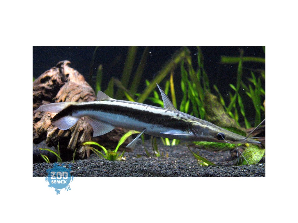 Výbava: písčitý nebo jemný štěrkový substrát, velké kořeny, úkryty, tlumené světlo. Potřebuje dostatek volného prostoru pro plavání.