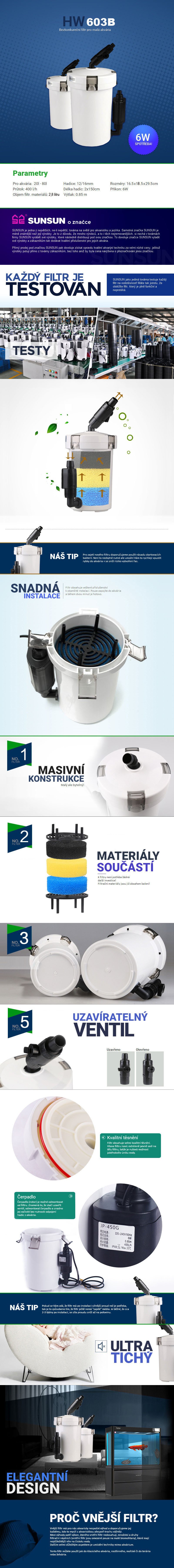 Vnější filtr pro malá akvária do 80 litrů s filtračními materiály s regulací průtoku.