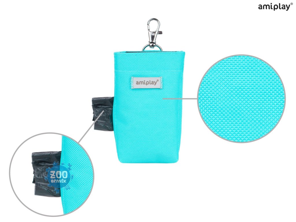 Sáček na sáčky připnutý k vodítku. Vyrobeno z kvalitních materiálů, odolné, praktické.