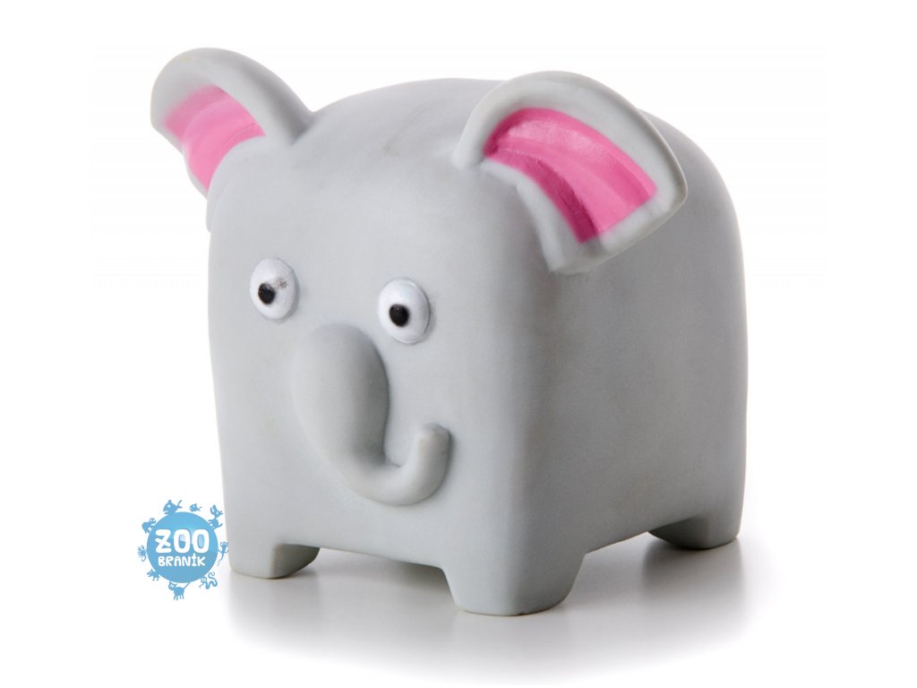 Vinylová kostka slon, šedá pískací hračka pro psy, 10 cm, ideální pro aktivní hru